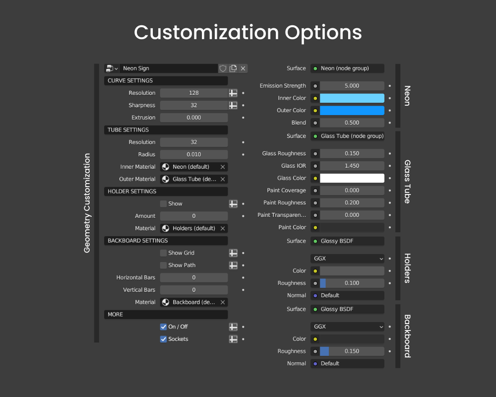 Neonskyltar används ofta för att skapa atmosfäriska stadsmiljöer i 3D. En neonskylt kan se ut på oändligt många sätt, men processen för att modellera den är i princip densamma oavsett form. Jag såg en möjlighet att automatisera denna process genom att skapa ett verktyg med Geometry Nodes i Blender.